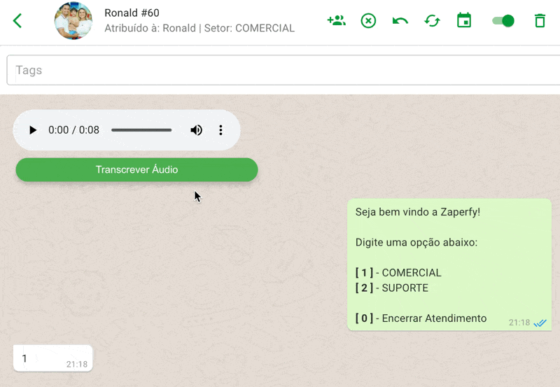 Não. A plataforma se concentra exclusivamente no gerenciamento de tickets de atendimento por meio de mensagens, mas você pode enviar áudio normalmente.
